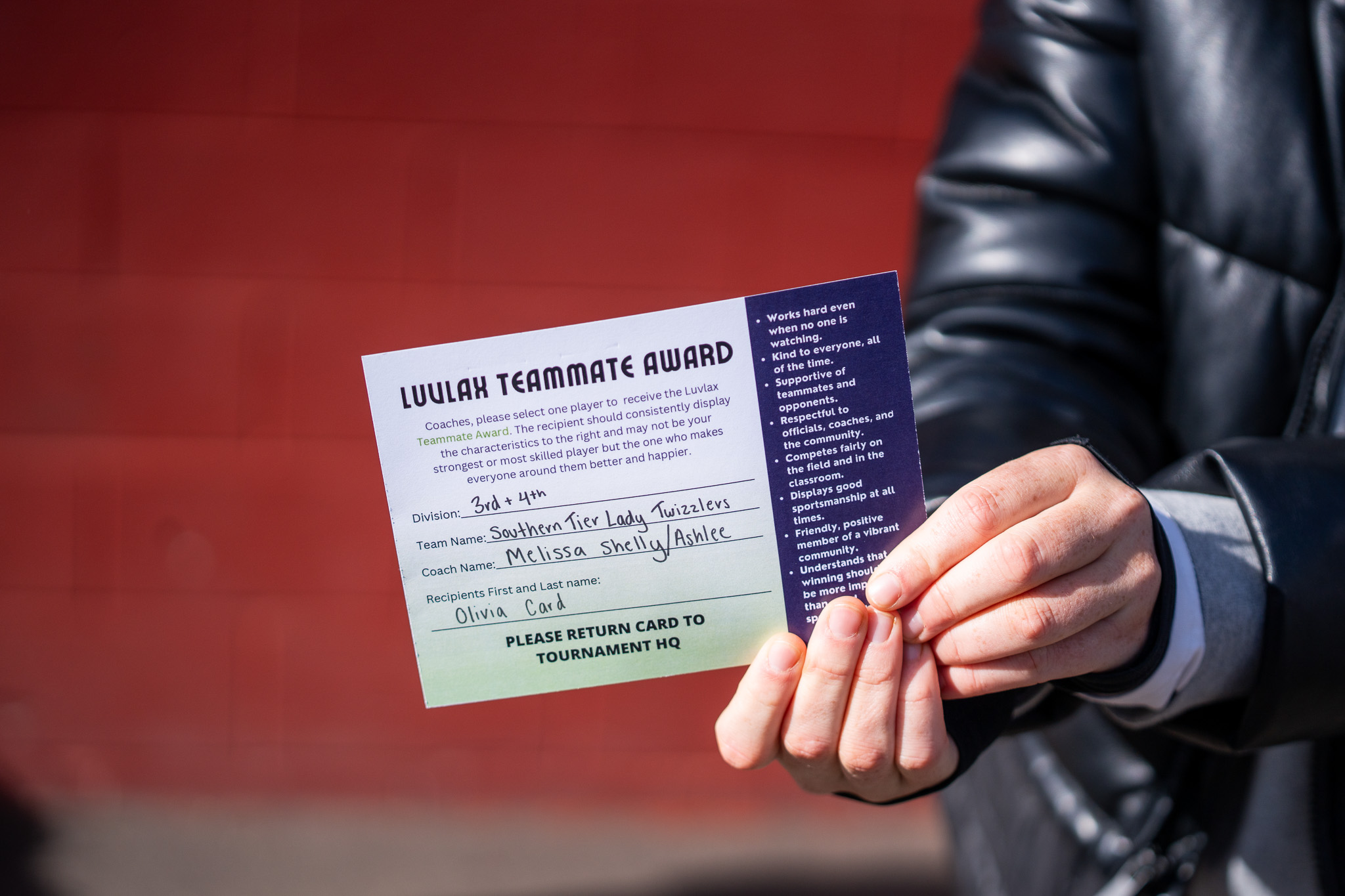 The Luvlax Most Valuable Teammate award recipients should honor the game by displaying the following characteristics:
